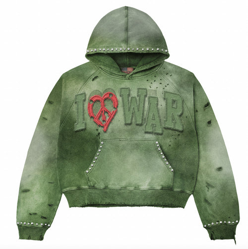 I Heart WAR HOODIE Olive Green washed