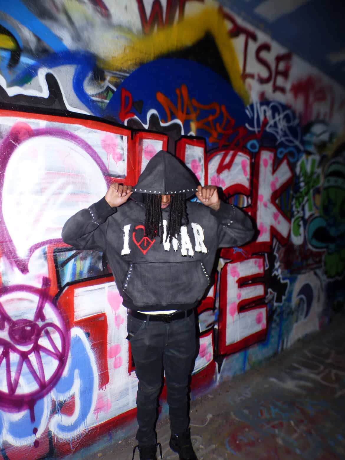 I Heart WAR HOODIE Faded Black washed